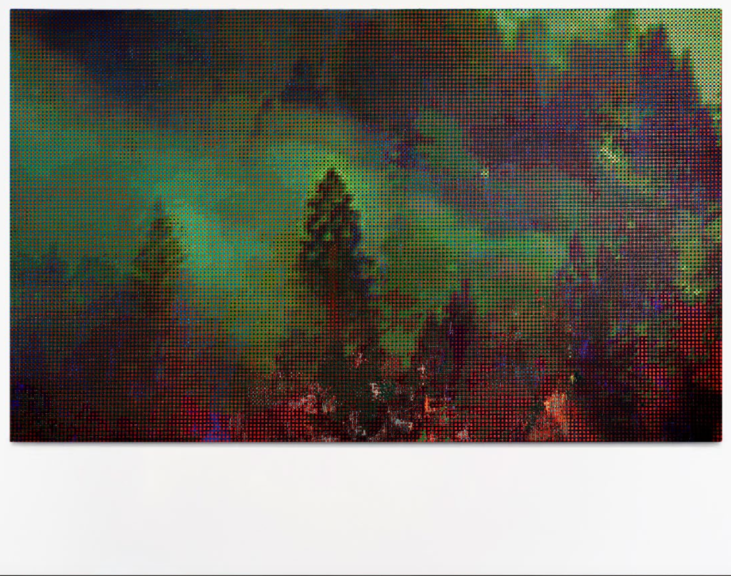 In this monumental work, Giuseppe Penone (1947) employs a unique technique to recreate the imprint of a mouth from the skin’s surface onto a canvas. He enlarges the patterns captured by the mouth’s imprint and records them using acacia thorns, creating an image that resembles a landscape or forest when viewed up close or from the side. Individually, the thorns symbolize the myriad nerve endings responsible for the sensitivity of our skin and its ability to capture information.