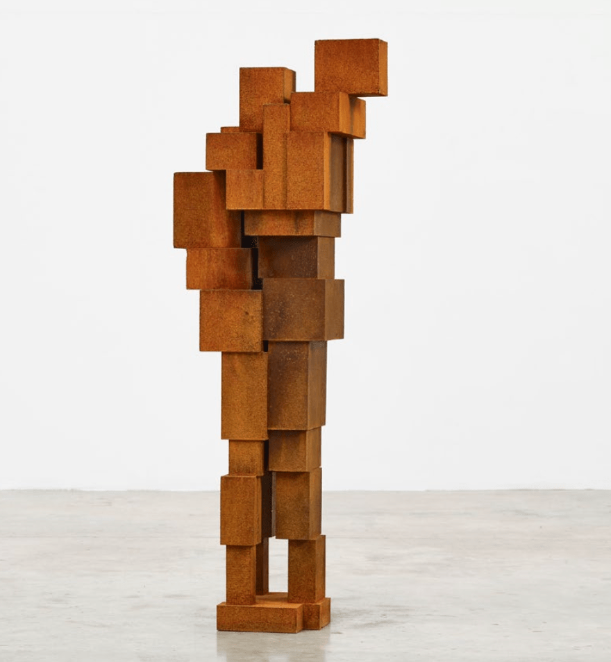 Gerard Richter (1932) presents a standing over 3 meters tall, STRIP-TOWER is an installation that unites several threads of the artist’s continuing inquiry into the nature of visual representation. Presented by David Zwirner at Unlimited, for $2.5m. For decades, Gerhard Richter has created works using glass and mirrored surfaces, harnessing their reflective properties and enhancing our perception of the built environment. Here, for the first time, Richter presents a sculptural version of his Strip paintings (2011-2015) – derived digitally from the groundbreaking Abstrakte Bilder, combining painting, photography, and print reproduction – thus expanding his analytical and experimental approach to the painted medium into three dimensions. The work is constructed with eight glossy perpendicular panels that reflect their surroundings, effectively collapsing the division between the picture plane and the outside world.