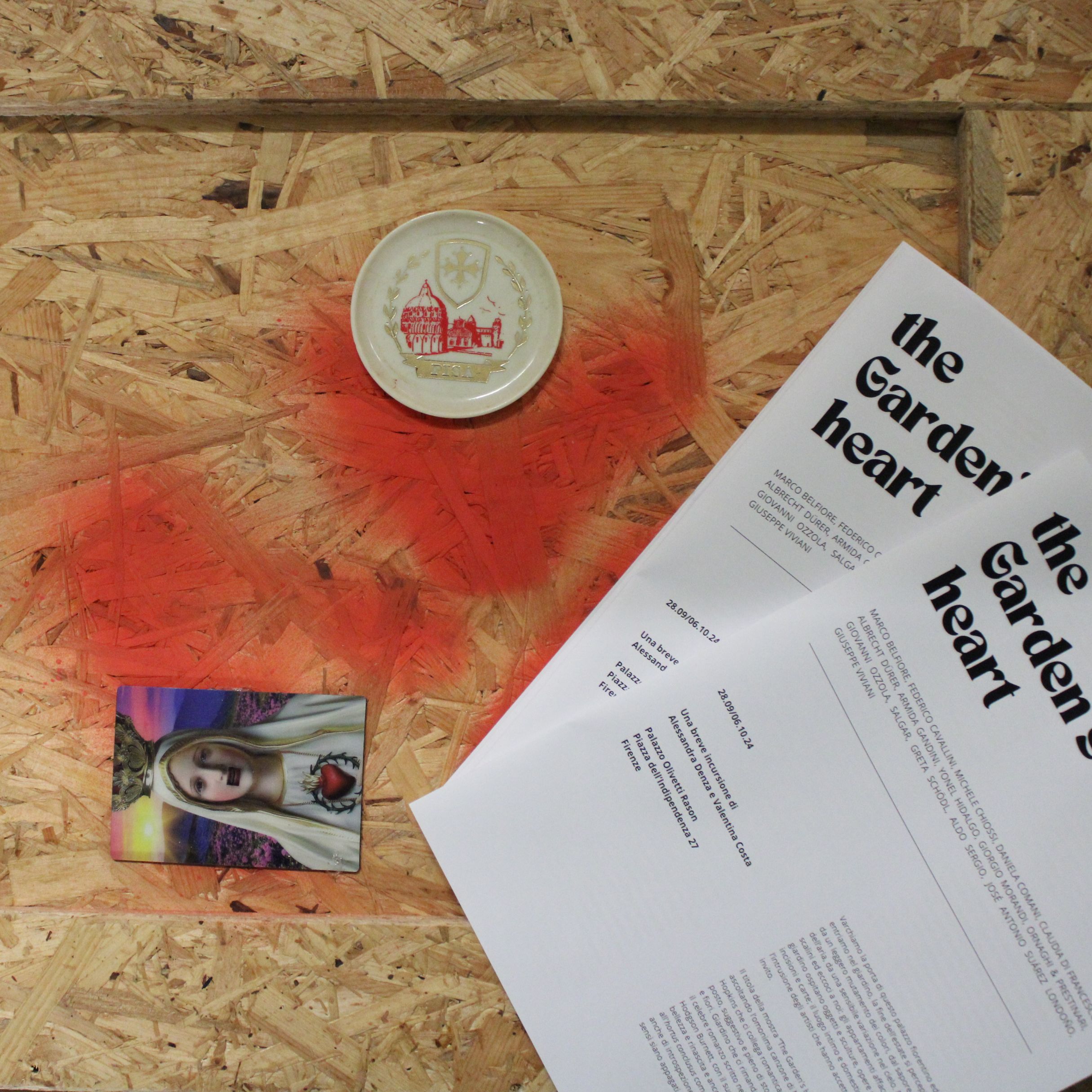 The title of the exhibition “The Garden’s Heart” was born by listening to the song of the same name by Natasha Khan and Jon Hopkins which romantically connects us to this place, evocative and full of history, stories, trees and flowers. Garden that refers us to the “Secret Garden”, the famous novel written in 1910 by Frances Hodgson Burnette, with its message of strength, beauty and rebirth and again, in a more metaphorical sense, to the hortus conclusus as a search for serenity but also for introspection and identity, where the five senses are satisfied. Mirabilia: naturalia and artificialia Wunderkammer, the chamber of wonders or cabinet of curiosities. If nature takes care of itself on the outside, the inside is crowded with things. In addition to the works, we asked the artists to bring something precious or special or simply noteworthy, the mirabilia – or things that arouse wonder – such as a photograph, a book, a collected object, a newspaper clipping, a verse of a song … The furniture in the study becomes part of the exhibition, the dressers are the plinths for the sculptures, we arrange books and papers on the table. The exhibition itinerary aims to develop in the meantime, in the making: the artists are free to arrive and install their works at a later time, moving something, repositioning it; the spectator will find himself faced with an installation that is not yet finished, but in continuous evolution, even with only small movements and slippages. A shared exhibition, built and continually changed during the opening days.