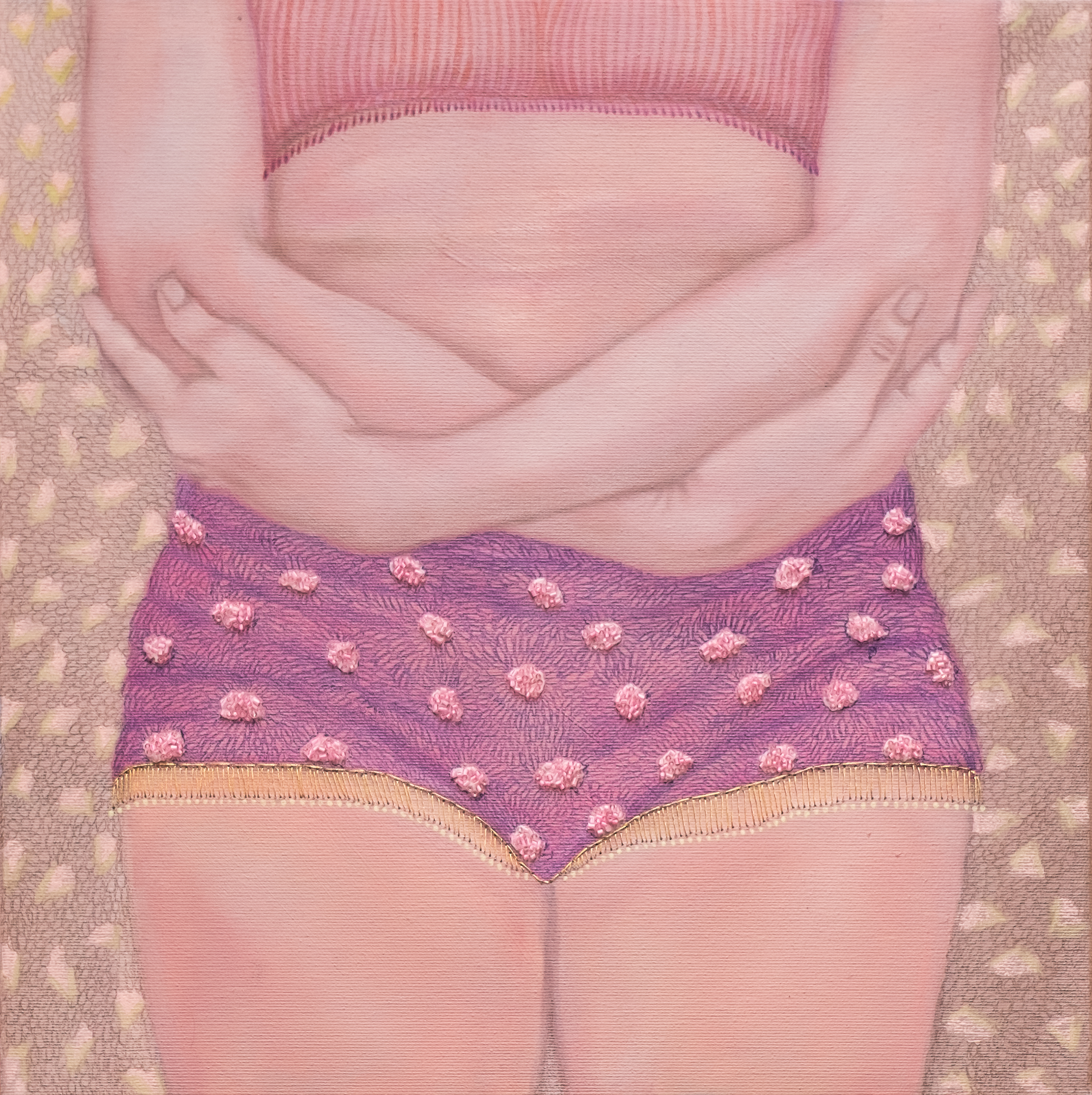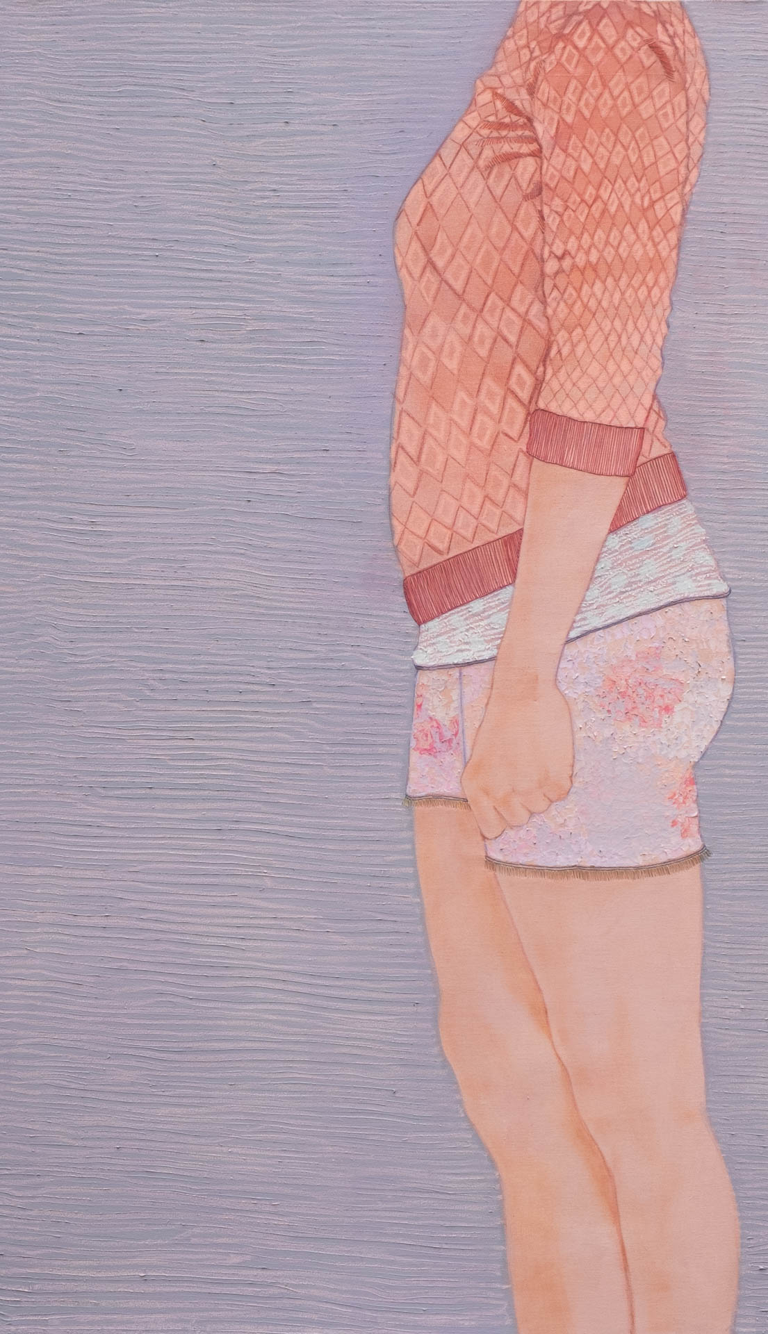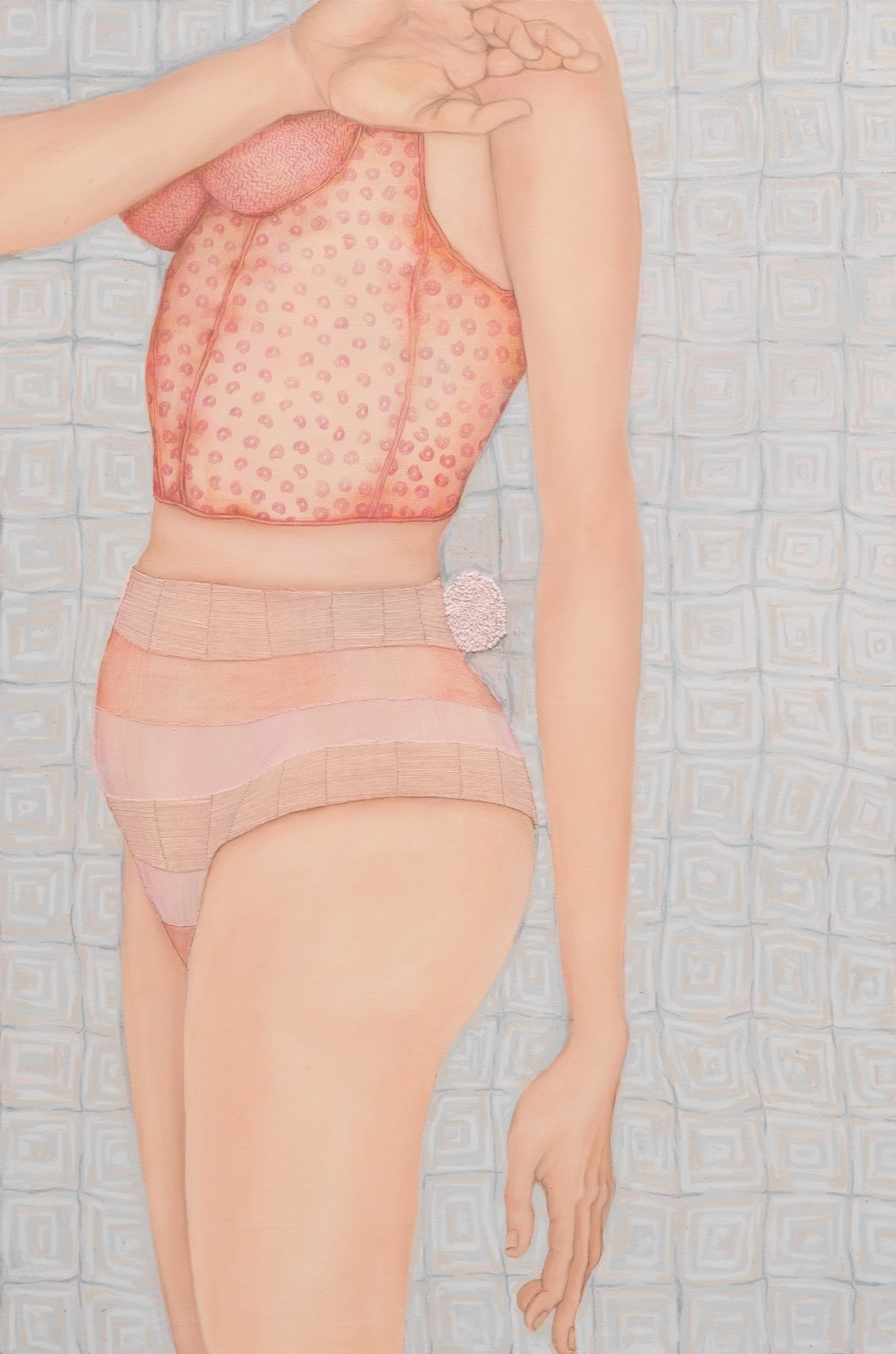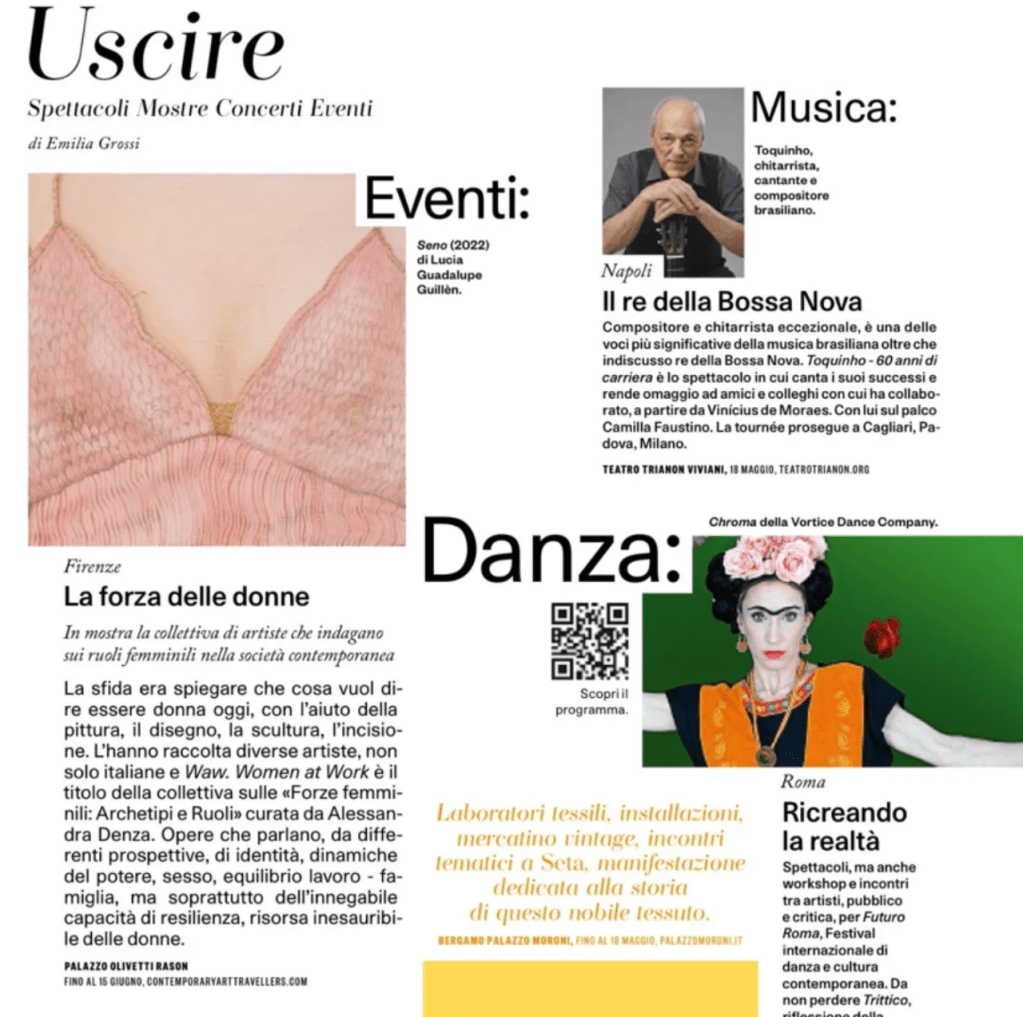 Women are the constant protagonists of her series. Rather than focusing on facial expression, Guadalupe shifts attention to the body—its posture, gestures, and spatial presence. Hands, legs, and the positioning of the torso become vehicles of emotional and psychological insight. This choice aligns with a broader reflection on how identity is embodied rather than declared. The result is a subtle, poetic visual language in which each figure seems to emanate a presence that is almost sensory—what might be described as a “profumo,” an intangible aura.